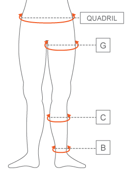 Para que a Jobst Opaque funcione perfeitamente, o tamanho deve ser exato, por isso, você precisará tirar as medidas preferencialmente pela manhã (quando as pernas estão menos inchadas):Circunferência do tornozelo (B)