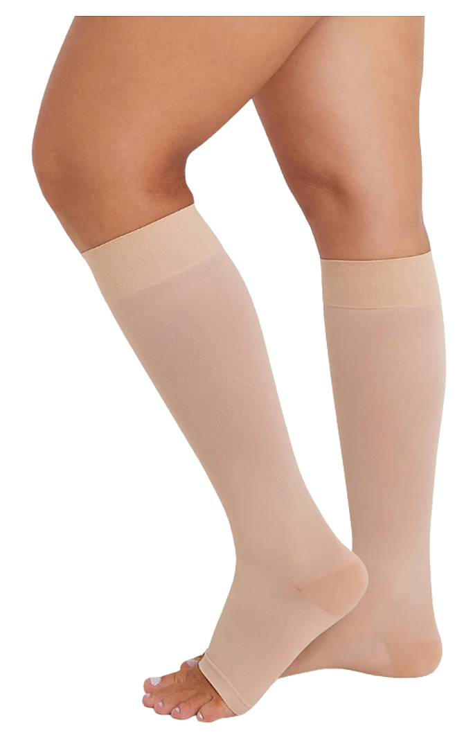 Com tecido translúcido e toque suave, proporciona aparência semelhante a uma meia comum, auxiliando na circulação sanguínea, na redução do inchaço e da sensação de pernas cansadas ao longo do dia.