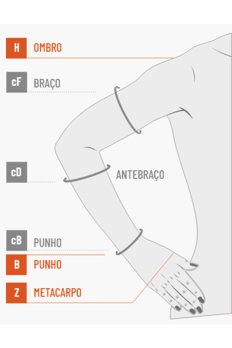 Sua compressão graduada 20–30 mmHg exerce maior pressão na base do braço (antebraço), auxiliando o retorno venoso e a melhora da drenagem linfática, contribuindo para o alívio de inchaço e sensação de fadiga.