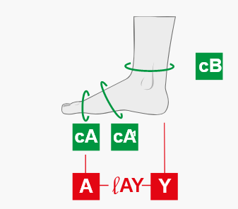 | Tamanho (cm) | cB (Tornozelo) | cA (Peito do Pé) | cA1 (Peito do Pé) |